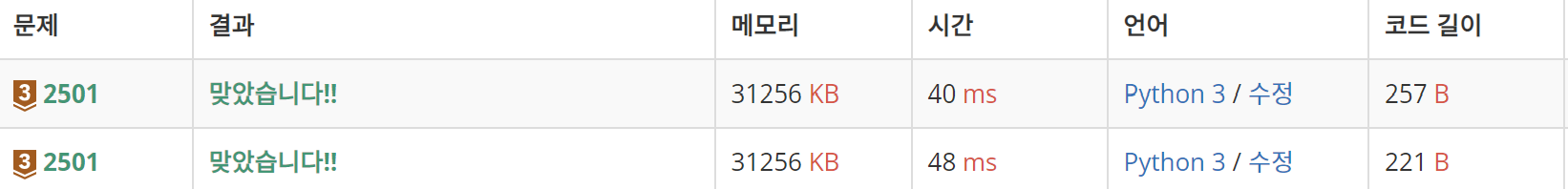 실제로 맨 처음 for i in range(1, N+1)로 제출한 코드는 48ms가 걸린 반면, for i in range(1, N//2 + 1)로 제출한 코드는 40ms가 걸렸다.
