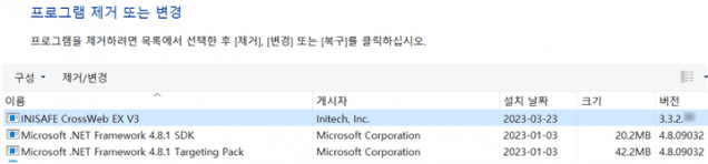 본인 컴퓨터에 보안프로그램인 INISAFE가 있다면 즉시 지워주시길 바랍니다.