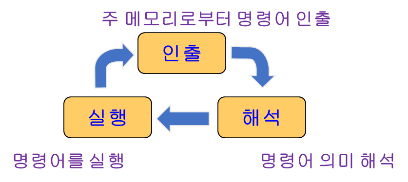 - CPU의 인출-해석-실행(fetch-decode-execute) 주기 반복