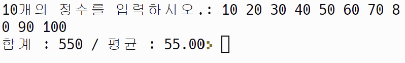 printf("ํฉ๊ณ : %d / ํ๊ท : %0.2f", sum, avg);