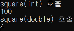 cout << square(10) << endl; // 인수가 정수이므로 정수 버전 호출