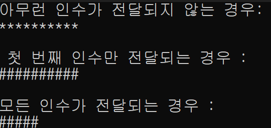 cout << "\n 첫 번째 인수만 전달되는 경우 : \n";