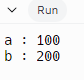 이 코드는 a와 b의 값을 바꿀려고 만든 코드인데, 실제로는 바뀌지가 않는다. 왜냐하면 함수 swap(100, 200)를 호출하면 실매개변수 a, b 값이 함수 swap의 형식매개변수 x, y로 각각 전달이 되는데 원본을 복사해서 전달하기 때문이다. 함수 swap에서 x와 y의 값을 바꾸지만, 수행이 끝난 후, 호출한 곳으로 돌아오면 a와 b의 값은 변하지 않는 것이다.