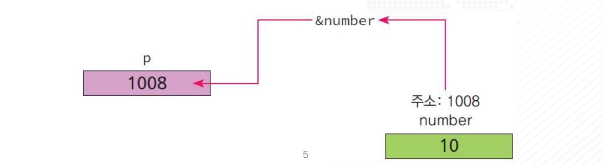 p = &number; // 변수 number의 주소가 포인터 p로 대입