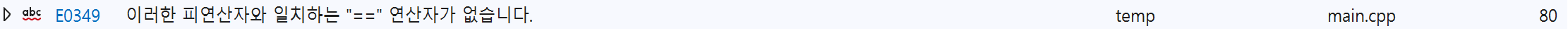다음과 같이 일치하는 "==" 연산자가 없다는 오류가 나온다. 주어진 코드는 Person 클래스를 정의하고 두 객체를 생성한 후, 두 객체 간의 등호(==) 비교를 시도하고 있지만 현재의 Person 클래스는 등호 비교 연산자(==)를 오버로딩하지 않았기 때문에, 컴파일러는 두 객체를 비교하는 방법을 알 수 없다. 따라서 등호 비교 연산자는 사용자 정의 클래스에서 객체 간의 비교를 수행하기 위해 오버로딩을 해야 한다. 이를 통해 사용자가 정의한 조건에 따라 아래 코드처럼 두 객체를 비교할 수 있다.