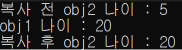 cout << "복사 후 obj2 나이 : " << obj2.age << endl;