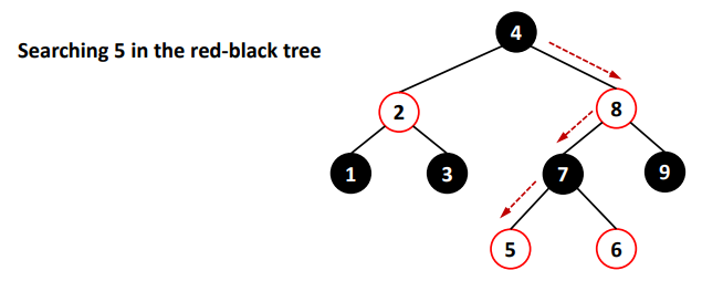 - 전반적인 과정은 Binary Search Tree와 비슷하다, 그러나 여기에 Rebalance를 위해 color promotion과 rotation을 수행한다.