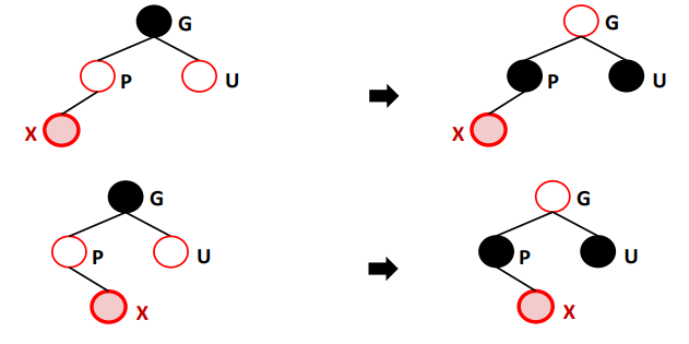 - Case 2: 삽입되는 X의 노드의 Uncle 노드가 red인 경우