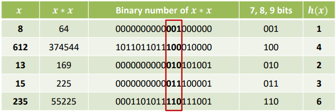 - ℎ(𝑥): x * x의 중간에서 𝑟 비트를 가져온다.