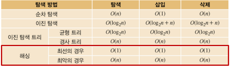 - 일반적으로 hashing은 검색하는데 있어서 아주 좋은 방법이다.