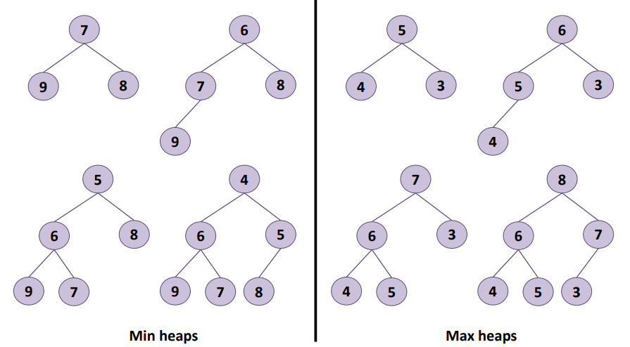 - Subtrees들도 항상 힙을 이룬다. => key(parent) >= key(child)