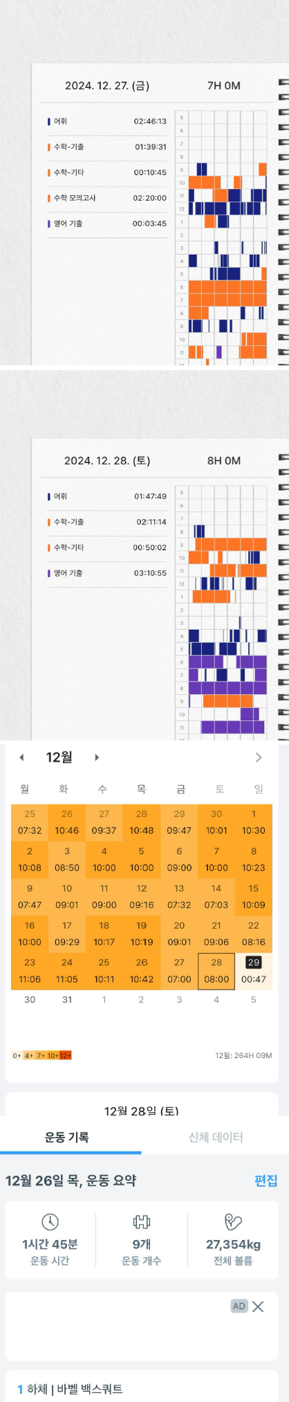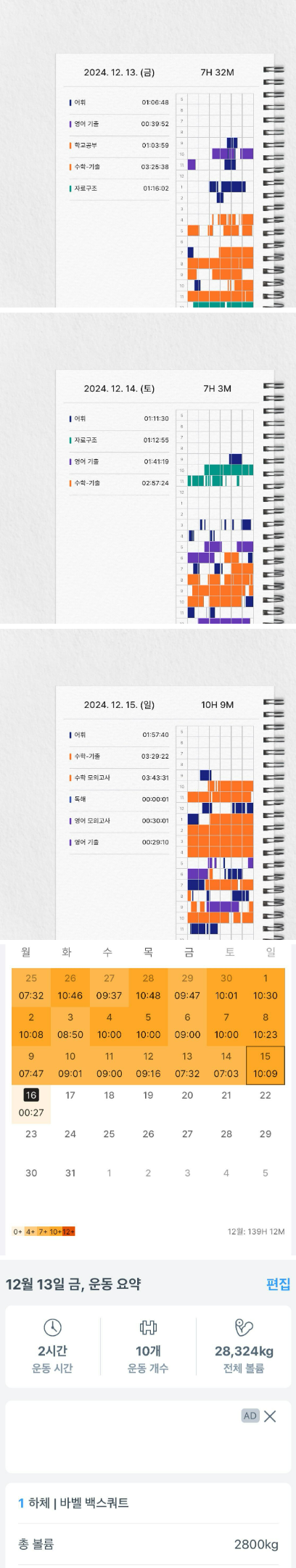 24.12.18 (수) 세번째 교양 수학과목 기말고사도 끗! 이제 낼 시험까지 끝내고 순공시간 점차 늘리자!